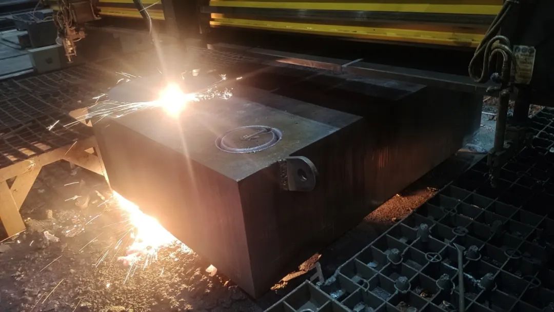不斷創(chuàng)新,不斷突破,2024年9月4日,公司再傳喜訊。繼公司成功突破 700mm 超厚零件外形切割技術后,又實現了 770mm 超厚零件 ?390 內孔的切割,再度書寫超厚鋼板切割領域的嶄新篇章!